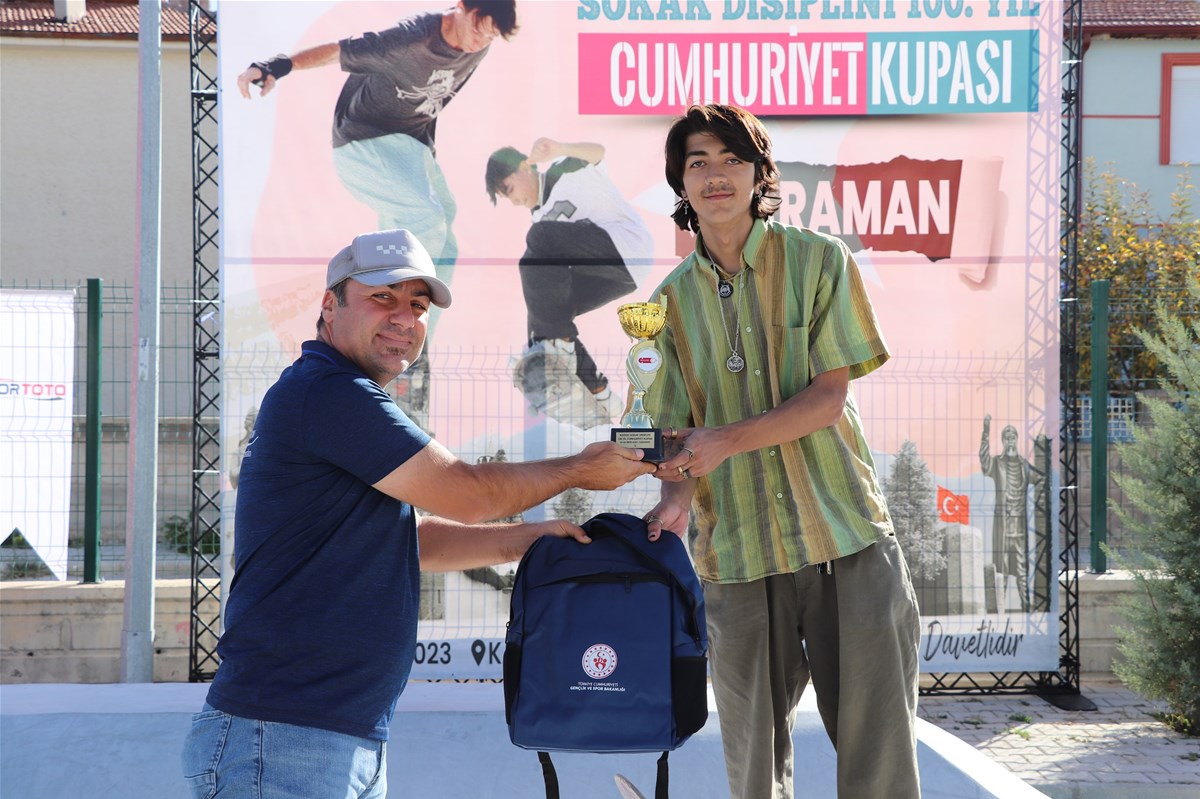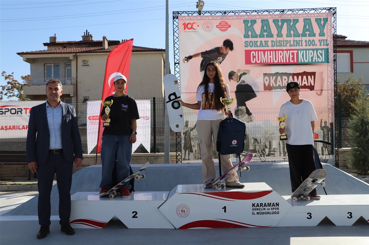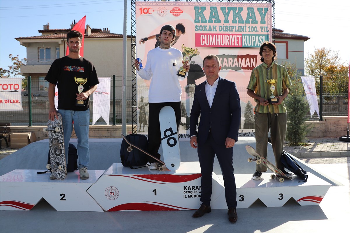 Türkiye Kaykay Federasyonu’nun Cumhuriyetin 100. Yıl etkinlikleri çerçevesinde Karaman’da düzenlediği Sokak Disiplini 100. Yıl Cumhuriyet Kupası yarışmaları, sokak disiplini kategorisinde son gün yapılan final yarışmalarının ardından sona erdi.